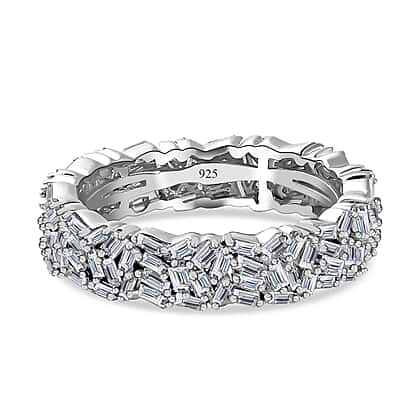 LUXURIANT 1 Ct. Lab Grown Diamond Firecracker Band Ring in Rhodium Overlay Sterling Silver (SI-GH)