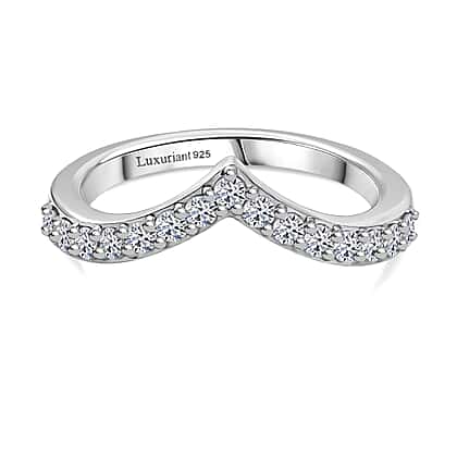 Luxuriant Lab Grown Diamond Chevron Knife Edge Ring in Rhodium OverlaySterling Silver 0.495 Ct.