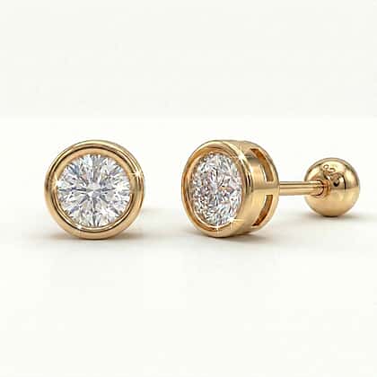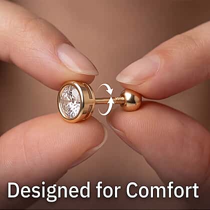 LUXURIANT Lab Grown Diamond Solitaire Stud Earring with Ball Screw Push Back in 18K Vermeil Yellow Gold Over Sterling Silver
