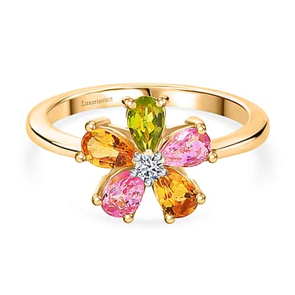 Luxuriant Lab Grown Diamond, Multi-Tourmaline Ring Sterling Silver 1.070 Ct.