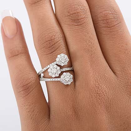 LUXURIANT 1 Ct. Lab Grown Diamond Floral Ring in Rhodium Overlay Sterling Silver