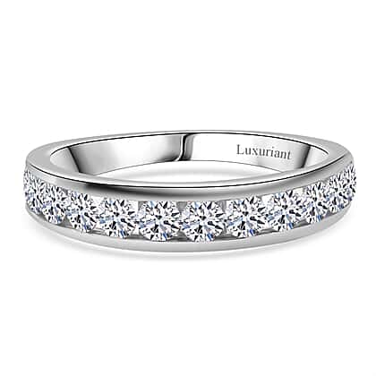Luxuriant Lab Grown Diamond (SI-GH) Band Ring in Rhodium Overlay Sterling Silver 1.00 Ct.