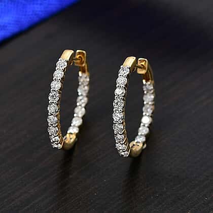 LUXURIANT 1 Ct. Lab Grown Diamond Full Hoop Inside-Out Earring in 18K Vermeil Yellow Gold Over Sterling Silver (SI-GH)