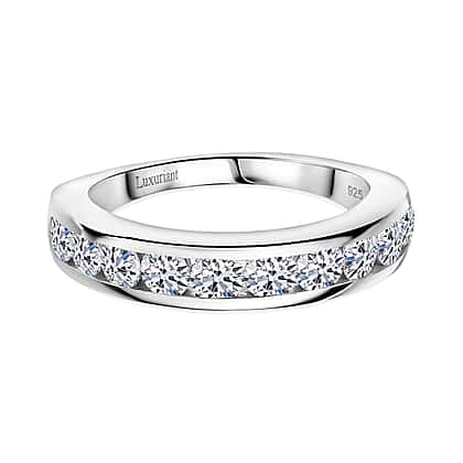 LUXURIANT 1 Ct. Lab Grown Diamond (SI G/H) Half Eternity Band Ring in Rhodium Overlay Sterling Silver
