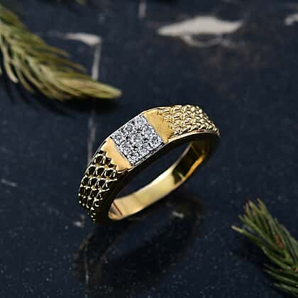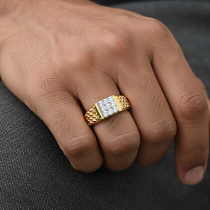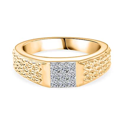 Luxuriant Lab Grown Diamond (SI-GH) Mens Ring in 18K Vermeil Yellow Gold Plated Sterling Silver 0.24 Ct, Silver Wt. 7.44 Gms.