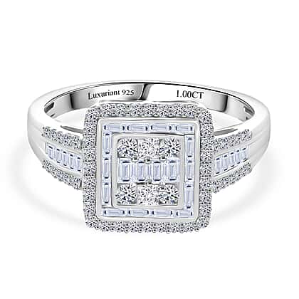 LUXURIANT 1 Ct. Lab Grown Diamond Cluster Ring in Rhodium Overlay Sterling Silver