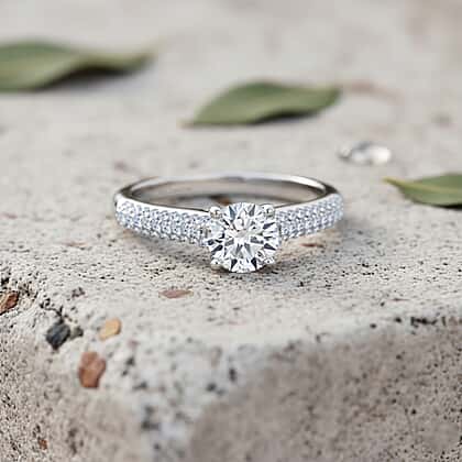 LUXURIANT 1 Ct. Lab Grown Diamond Solitaire Ring in Rhodium Overlay Sterling Silver