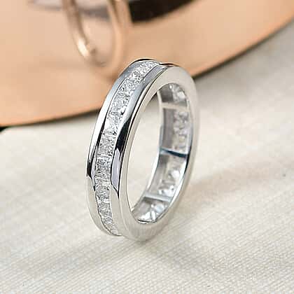 LUXURIANT 1.82 Ct. Lab Grown Diamond Full Eternity Band Ring in Rhodium Overlay Sterling Silver (VS-EF)