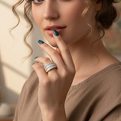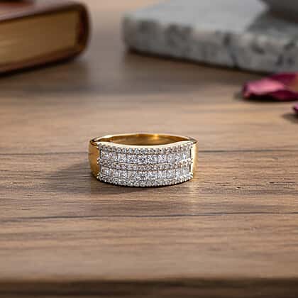 LUXURIANT 1.50 Ct. Lab Grown Diamond Multi Row Ring in 18K Vermeil Yellow Gold Over Sterling Silver (VS-EF)