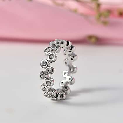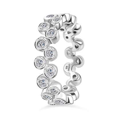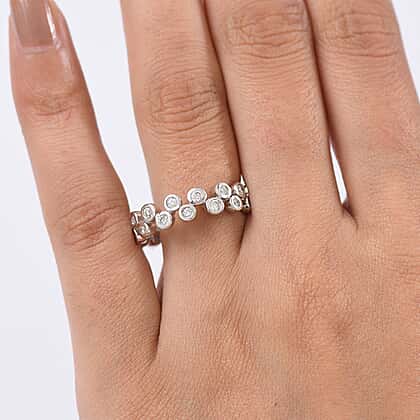 Bring a wave of radiant sparkle to the moment with this full-circle lab-grown diamond band ring, catching light from every angle. Each round design holds a bright, crisp stone wrapped in rhodium-finished silver, creating a soft, rhythmic shine around the finger. Meticulously crafted in hypoallergenic 925 sterling silver, this ring ensures durability and comfort for sensitive skin. Smooth on the inside and sculpted on the outside, the band balances brilliance with comfort. Perfect for stacking or wearing alone, it adds a touch of modern luxury to any fine jewellery collection.