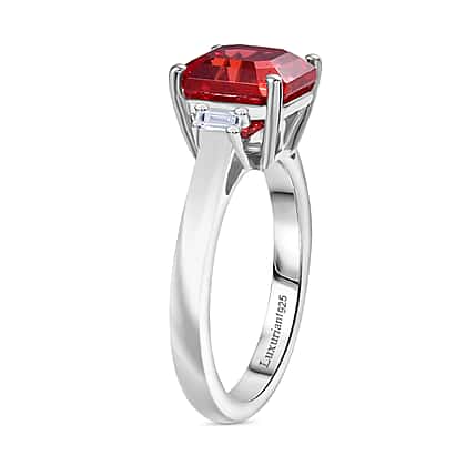 Luxuriant Lab Grown Padparadscha Sapphire & Lab Grown Diamond Ring in Rhodium Overlay Sterling Silver 5.17 Ct.