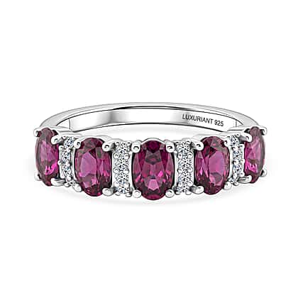 Luxuriant Radiant Ember Garnet, Lab Grown Diamond 5 Stone Ring in Rhodium OverlaySterling Silver 1.541 Ct.