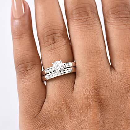 Luxuriant Set of 2 - Lab Grown Diamond (SI-GH) Ring in Rhodium Overlay Sterling Silver 1.22 Ct.
