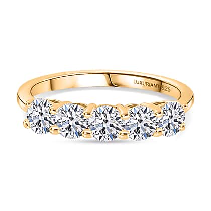 LUXURIANT 1 Ct. Lab Grown Diamond 5-Stone Ring in 18K Vermeil Yellow Gold Sterling Silver SGL Certified (SI-GH)