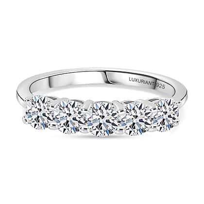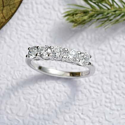 LUXURIANT 1 Ct. Lab Grown Diamond 5-Stone Ring in Rhodium Overlay Sterling Silver SGL Certified (SI-GH)