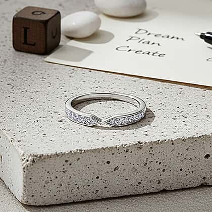Don't feel restricted by conventions that allow your personality to shine through with unusual ring settings. Case in point is this Luxuriant lab grown diamond ring. It features an elegant, sculptural silhouette with a gentle V-shaped curve at the centre. The ring is adorned by round lab-grown diamonds that add oodles of sparkle to the design. Whether you are looking for a ring to complement your engagement ring or a solitaire one, the V-curve allows any other ring to be stacked effortlessly. Crafted in rhodium overlay sterling silver, this ring can symbolise coming together of two individuals to make a couple.