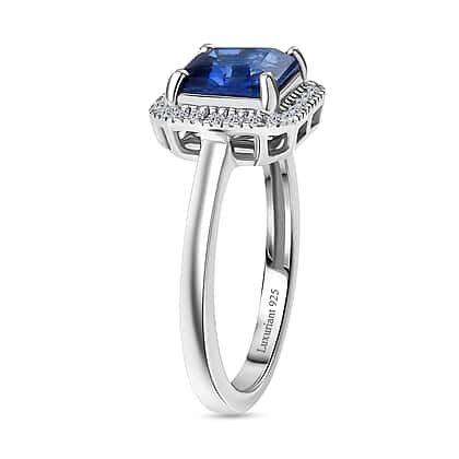 Luxuriant SI-G-H Lab Grown Diamond & Kyanite Halo Ring in Rhodium Overlay Sterling Silver 2.13 Ct.