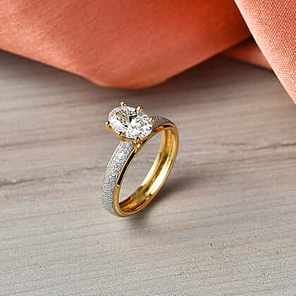 Luxuriant SI-G-H Lab Grown Diamond Solitaire Ring in 18K Vermeil Yellow Gold Plated & Rhodium Overlay Sterling Sterling Silver 1.07 Ct.