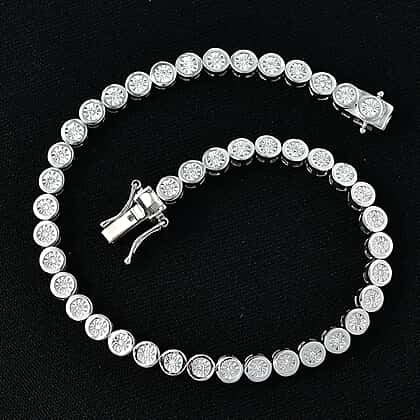 LUXURIANT Lab Grown Diamond Tennis Bracelet (Size - 7) with GB Lock Box in Rhodium Overlay Sterling Silver (SI-G-H)