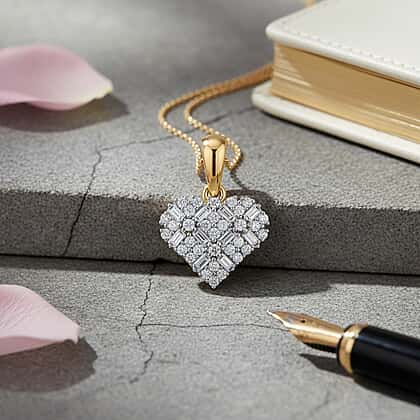 LUXURIANT Lab Grown Diamond Cluster Heart Pendant in 18K Vermeil Yellow Gold Plated Sterling Silver 0.25 Ct. (SI-GH)