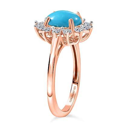 Luxuriant Sleeping Beauty Turquoise & Lab Grown Diamond (SI-GH) Ring in 18K Vermeil Rose Gold Plated Sterling Silver 2.38 Ct.