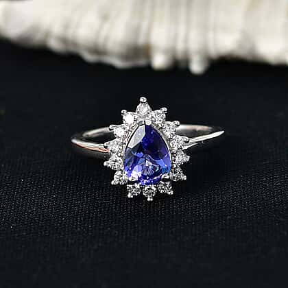 Luxuriant Tanzanite & SI-G-H Lab Grown Diamond Sunburst Halo Ring in Rhodium Overlay Sterling Silver 1.52 Ct.