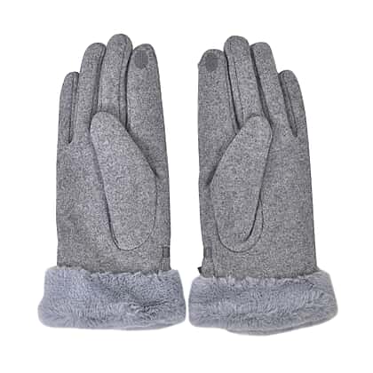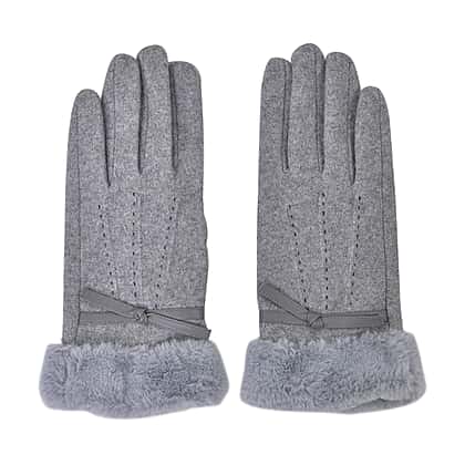 Luxurious 70% Cashmere Gloves with Faux Fur Trim - Grey