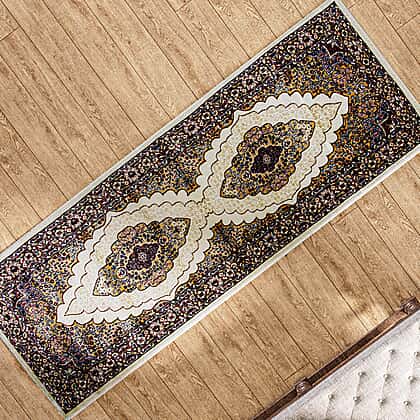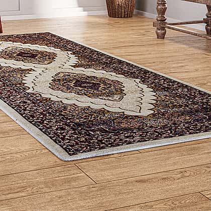 Luxurious Pile Runner with Kashmiri Print (180x66 cm) - Brown - Multi