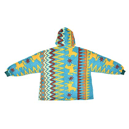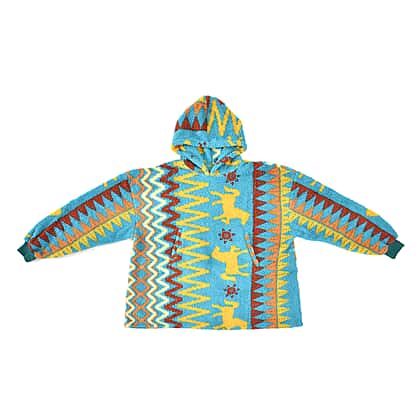 Luxurious Super Soft Sherpa Blanket Hoodie (Over Sized - 194x98 Cm) - Pale Blue & Multi
