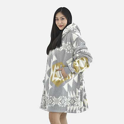 Luxurious Super Soft Sherpa Blanket Hood (Over Sized - 194x98Cm)- Grey