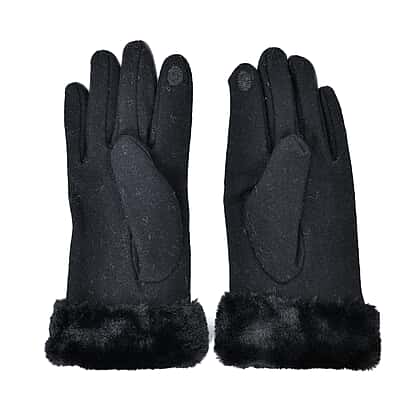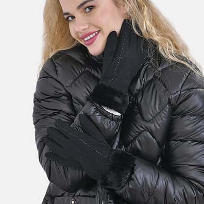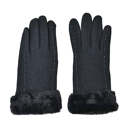 LUXURY GIFT MEGA OFFER- Cashmere Double Layer Gloves with Warm Fleece Interior & Faux Fur Trim (Touch Screen Usable)- Black