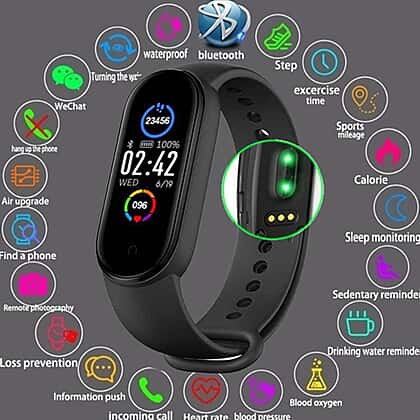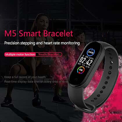 M5 Smart Watch with Silicone Strap, Fitness Tracker Band with Multi Functions Excercise Time, Heart Rate, LCD Display, Lightweight, Portable, Speed and Distance, Bluetooth and more