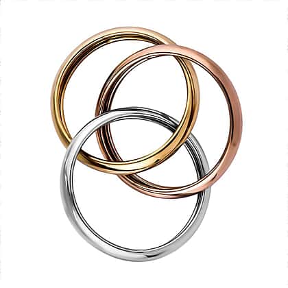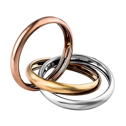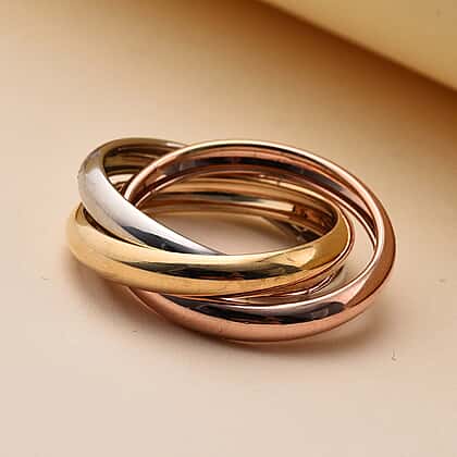 - DESIGN: A wedding ring that is also known as the triple rolling ring and carries three interlocking band rings made of yellow, white and rose gold. This wedding band ring became popular with the onset of the 19th century and symbolizes the Holy Trinity of Christian orthodox religion and apart from that it also symbolizes how the past, present and future of a couple would pan out