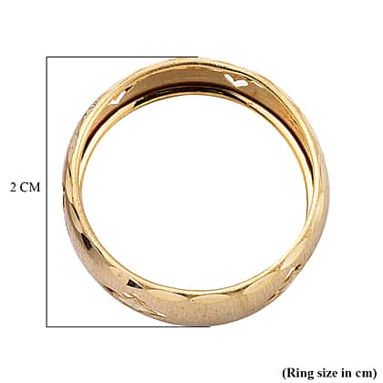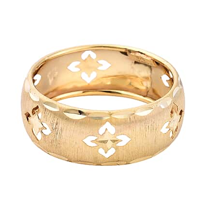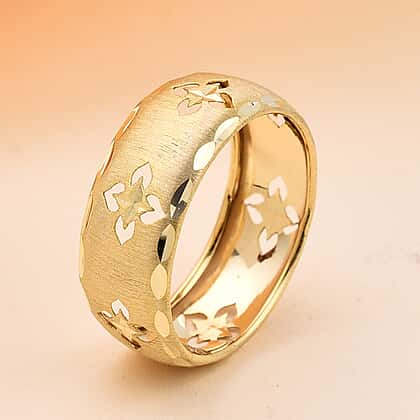The Clover ring is made up of 9K Yellow Gold. The design is inspired by the four leaves together. The design is famous worldwide for its good fortune. The ring is in band shape with Leaf textured boundaries. The clover design is carved in the distance and covers the whole shank of the ring.