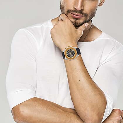 Majesty Multifunction Movt. 3 ATM Water Resistant Watch with Black Leather Strap in Gold Tone