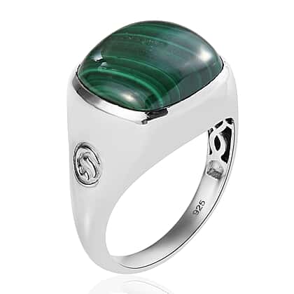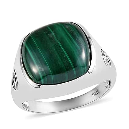 14.88 Ct Malachite Signet Ring in Platinum Plated Sterling Silver