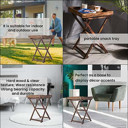 This mango tree wood tray and stand give an aesthetic and traditional touch to the corner of your home or garden. This table is made of high-quality mango wood, which has hard wood and a transparent texture, is wear-resistant and has a strong bearing capacity. The base of the stand is in an x-shaped leg that can be folded for more convenient use and is portable. You can carry it while traveling or going out for a picnic.