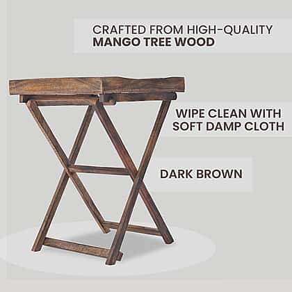 Mango Tree Wooden Tray with Stand (Size 46x46x61 Cm) - Dark Brown
