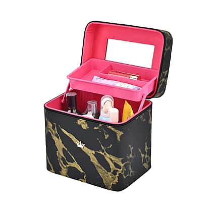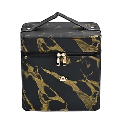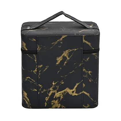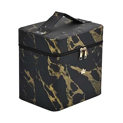 Marble Pattern Leatherette 2-Layer Makeup Box (Size 24x24x18 cm) - Black