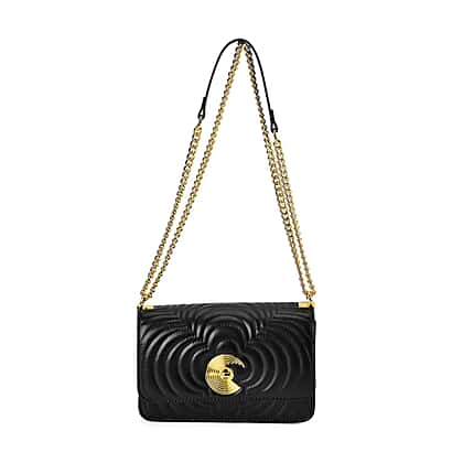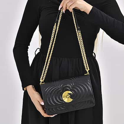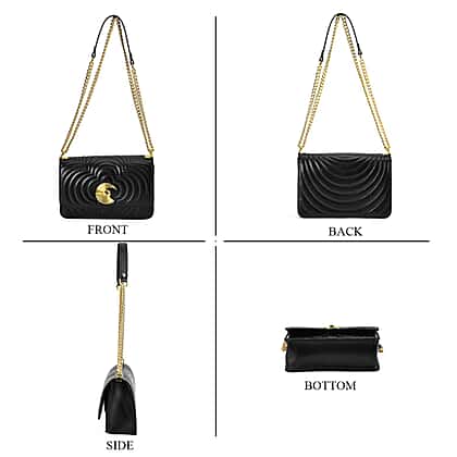 Leather Leaf Crossbody Bag (Size 23x8x15 cm) - Black