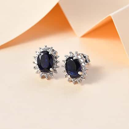 Masoala Sapphire & Natural Zircon Stud Earrings with Push Back in Platinum Overlay Sterling Silver 2.97 Ct.