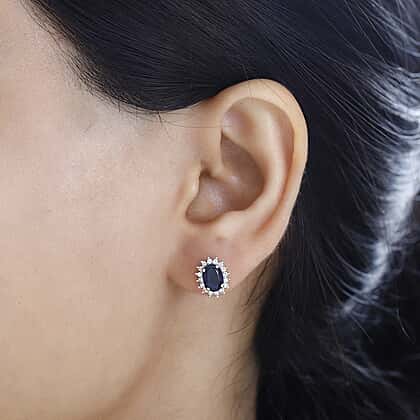 The classic halo ornament returns to your collection with this fabulous looking set of Masoala Sapphire and Natural Zircon Halo Stud Earrings. Their look is no doubt breathtaking and their build quality in Platinum Overlay Sterling is simply superb. The three prong placement of the zircons lends a floral outline to the halo around the oval-shaped sapphire.