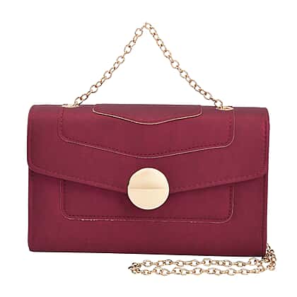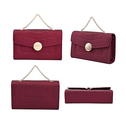 Faux leather Matte Clutch Bag with Metal Chain and Shoulder Strap - Burgundy