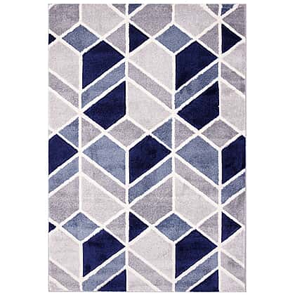 Maze Rug and Door Mat (Size 210x150 cm) - Blue & Cream