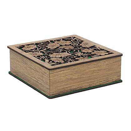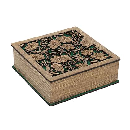 MDF Square Shape Floral Jewellery Box (Size 16x16x5 Cm) - Green