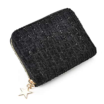 Sparkle Tweed Zip-Around Wallet - Dark Black