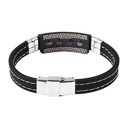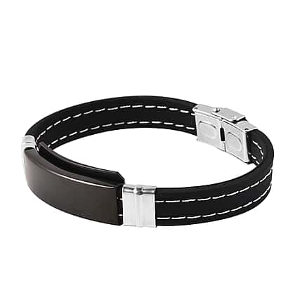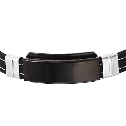 Men Bracelet in Black and Silver Plated Stainless Steel 8.25 Inch
