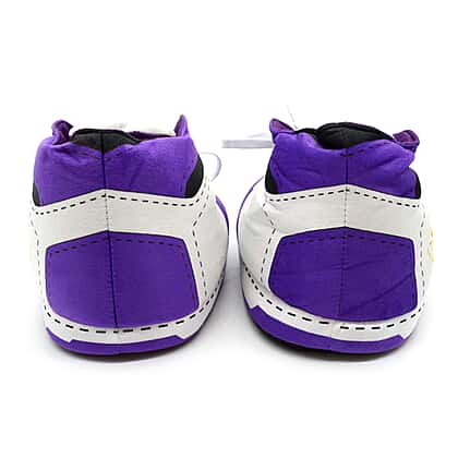 Step into regal comfort with Baffies Krazy Kicks Queen Bee Slippers. Featuring a stylish purple and white trainer-inspired design with elegant gold embroidery, these slippers add a touch of fun to your lounging routine. Crafted from 100% high-quality polyester, they provide plush comfort and warmth, while the gripped soles offer secure footing on any indoor surface. The convenient slip-on style ensures effortless wear, perfect for relaxing at home. Designed as oversized sneaker slippers, they make an ideal novelty gift for someone special or a quirky addition to your loungewear collection.