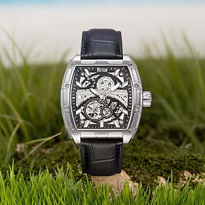 Reign Olympia Automatic Semi-Skeleton Watch in Genuine Leather Strap