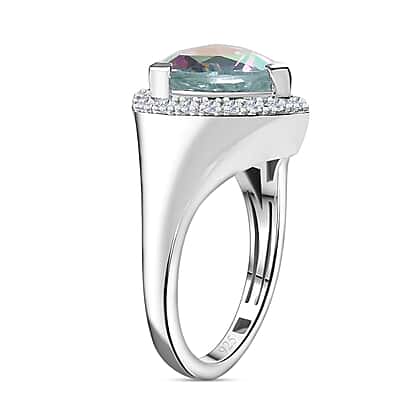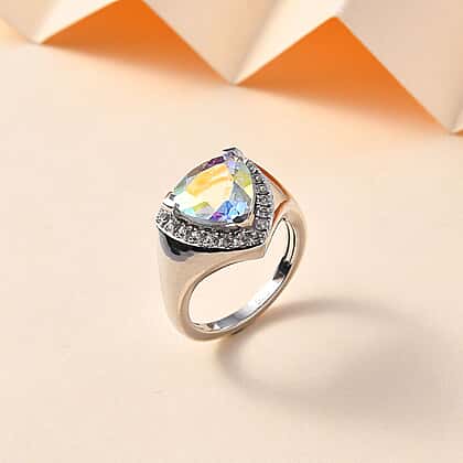 Mercury Mystic Topaz and Natural Zircon Trillion Ring in Rhodium Overlay Sterling Silver 4.28 Ct